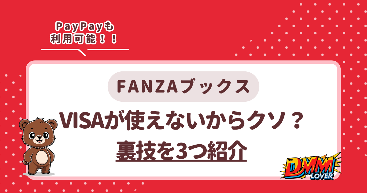 今回は、FANZAブックスでVISAが使えない時の対処法を解説しました。